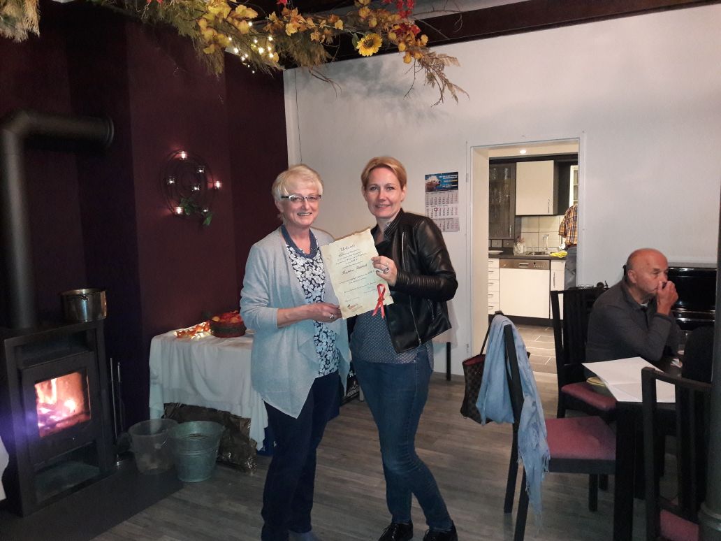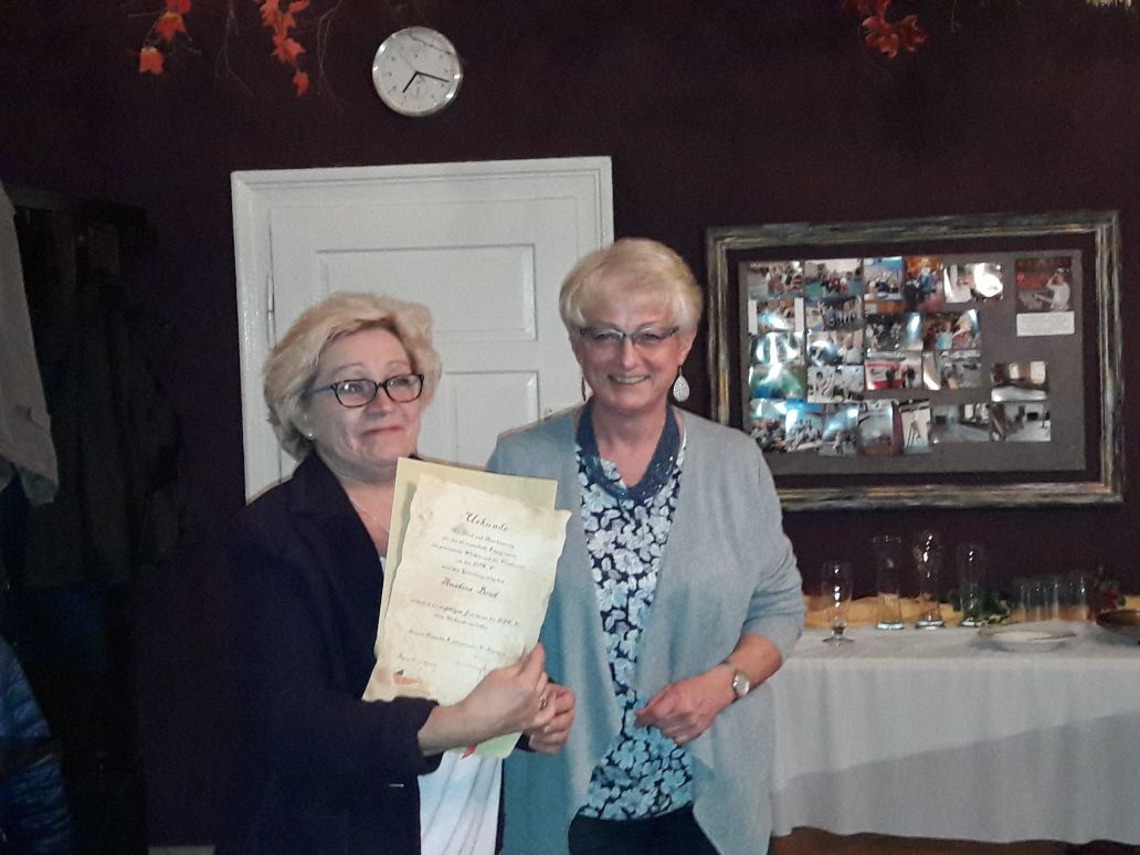 Sowohl im September als auch im Oktober waren unsere Stammtische (immer am 1. Mittwoch des Monats, 18 Uhr, im Vereinsheim) gut besucht. Wir nutzten die Gelegenheit, um lecker zu essen und für Gespräche. Außerdem hat Anna Makowka, 1. Vorsitzende unseres Vereins, Urkunden an Gründungsmitglieder überreicht, die beim Jubiläumsfest im Juli nicht dabei sein konnten.