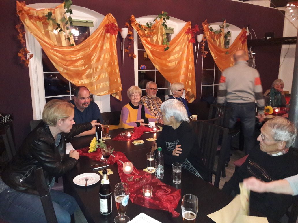 Beim Oktober-Stammtisch waren zum ersten – und hoffentlich nicht letzten – Mal neue Gäste dabei: das Ehepaar Peplau, die gemeinsam das 1.500 Seiten starke Buch zur Geschichte von Laineck geschrieben haben, sowie Jörg Grießhammer, Stadtrat, alteingesessener Lainecker und noch viel mehr: Bei einem kurzen Vortrag erfuhren wir, dass seine Großeltern in unserem Haus (1. OG) gewohnt haben und er selbst hier in den Kindergarten ging (in unserem heutigen Saal). Er ist sehr froh und dankbar darüber, dass dieses altehrwürdige Gebäude genutzt und auch instand gehalten wird. Mehr zur Geschichte unseres Vereinsheim folgt bald!